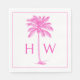 These preppy coastal inspired paper napkins feature a classic palm palmetto tree in pink on a white background with a monogram that you can personalize with your choice of initials.