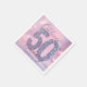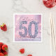 Put an end to your search! The ideal finishing touch for an unforgettable 50th birthday celebration is this customizable paper napkin. It shines against a gentle blush pink backdrop embellished with delicate bokeh lights, and features large "50" numbers surrounded by vivid faux silver glitter and confetti.