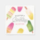 Conçues pour répondre aux invitations de fête d'anniversaire de nos enfants aux couleurs de l'aquarelle, ces serviettes en papier personnalisées mignonnes ont une bordure de popsicles d'aquarelle en vert et rose. "Joyeux anniversaire [nom]" apparaît dans le centre en lettres blanches.