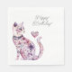 Serviette En Papier Pink Purple Blush Flowers Heart Love Cat Birthday