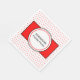 Serviettes en papier jetables à pique-nique familiales personnalisées tendance. Personnalisez avec le nom de famille de votre famille. Cliquez pour customiser pour augmenter/diminuer le nom de famille. Pois rouges amusants sur arrière - plan blanc avec l'apparence de doubles assiettes et centre de serviette rouge. Motif d'été pour se retrouver en famille et entre amis. OEuvre d'art et design © TamiraZDesigns.