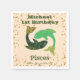 Les Fun Pisces peintes dans un style impressionniste. Les poissons ont leur queue et leurs nageoires dorées avec des nuggets d'or motif. Des confettis en or aléatoire sont affichés autour du texte et de l'image. Les couleurs utilisées sont vert clair et profond, vert foncé pour le poisson et le texte. L'arrière - plan est orange clair/pêche. Vous pouvez modifier le texte et les couleurs arrière - plans à l'aide des outils Zazzle.