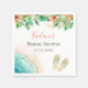 Plage de sable d'aquarelle avec fleurs botaniques de l'île et arrangements de feuillage et tongs embellisés, serviettes en papier personnalisées.
