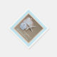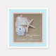 Ces magnifiques serviettes de cocktail en papier de douche à thème de plage sont dotées d'une étoile de mer, d'un dollar de sable et d'un coquillage sur un burlap look arrière - plan. La photo est entourée d'un petit bord blanc et d'un bord de pêche plus large et d'un bord bleu encore plus grand pour faire un beau thème de plage. Ce sont simplement de belles serviettes de douche mariages jetables. Copyright henishousofpaper