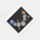 Haut en bas : Mercure, Vénus, Terre avec Lune, Mars, Jupiter, Saturne, Uranus, Neptune.