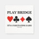 Faites faire à d'autres une double prise avec une dose d'assiette de pont wry/double lors de votre prochaine fête ou événement de pont spécial avec n'importe laquelle de ces serviettes personnalisables en papier avec les quatre costumes de carte ainsi que le conseil de pont suivant : "Play Bridge It's A Fascinating Game".