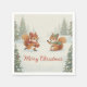Add festive cheer to your holiday table with these adorable watercolor Christmas napkins featuring two playful squirrels in cozy knitted hats and scarves surrounded by snowy Christmas trees and the text Merry Christmas that you can personalize. The whimsical boho watercolor style brings cozy winter charm and joyful holiday spirit to every meal or party. Perfect for families, kids, and festive celebrations. Part of a collection with matching cards, wrapping paper, plates, party supplies, gifts, and decor.