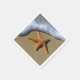 Photographie de plage frappante, une étoile de mer orange vif au bord de l'eau sur le point d'être recouverte d'une douce vague.
