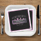 Serviettes de soirée à thème de bachelorette noir et rose avec quatre as et marquee signe. Personnalisez-le avec les détails de l'événement de la mariée.