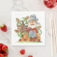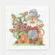 Un personnage de pays avec un signe pour les citrouilles, les pommes et les rides. Ce design semble vraiment efficace sur ces serviettes en papier