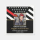 Cette conception comprend un drapeau de pompier avec des rayures noires et blanches, ainsi qu'une fine bande rouge. Les détails pour le pompier diplômé se trouvent sous une photo du nouveau diplômé de l'académie des incendies.