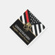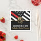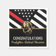 Cette conception comprend un drapeau de pompier avec des rayures noires et blanches, ainsi qu'une fine bande rouge. "Félicitations" et le casque d'un pompier est au-dessus du nom du pompier diplômé. Cette conception fonctionne également bien pour les pompiers, les lieutenants ou les chefs qui prennent leur retraite. Fêtez dans le style !