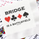 Pensez-vous que jouer au jeu du pont est une bataille entre plusieurs esprits (c.-à-d. vous et votre partenaire par rapport à vos adversaires)? Montrez l'attitude de votre pont tordu / pont dupliqué avec cette serviette en papier qui contient les quatre costumes de carte ainsi que le pont classique disant "Le pont est un champ de bataille" à votre prochain événement de pont!