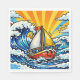 Cute paper napkins for a boy's sailboat themed birthday party! Whether maritime, nautical or sailing themed, these will be super cute. Bright nautical themed pop art with a sailboat sailing on the ocean waves.