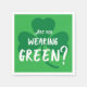 Préparez-vous à une fête de la Saint Patrick avec des serviettes en papier portant les mots "Portez-vous du vert?" sur un shamrock vert. Pour voir le design Portez-vous du vert ? Shamrock sur d'autres articles, cliquez sur le lien "Rocklawn Arts" ci-dessous. numériquement créé une image. Copyright ©2018 Claire E. Skinner. Tous droits réservés.