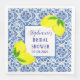 Carrelage portugais, bleu, aquarelle citrons, motif blanc et jaune, Azulejo rustique, serviettes de douche nuptiale méditerranéenne. Personnalisez-le avec vos détails.