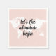 Serviette En Papier Positive rose Commençons l'aventure Carte du Monde