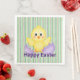 Ce mignon poussin éclate de cet oeuf pourpre pour vous souhaiter une Pâques heureuse. L'arrière - plan de ce design est composé de rayures rose, violet et vert foncé. Le vert clair peut être customisé avec une couleur de votre choix.