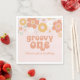Des serviettes Super d'un premier anniversaire retro avec des fleurs de style 70's et des polices et des couleurs boho.
