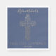 Ce design moderne de première sainte serviette en papier de communion comporte une croix complexe de style "feuille d'or" (simulée) et les mots "Première sainte communion" dans une police moderne. L'arrière - plan est bleu marine, mais peut être customisé à n'importe quelle couleur de votre choix. Ajoutez le nom de votre enfant et la date de l'événement religieux pour customiser davantage cette vaisselle de fête. Des invitations de correspondance, des boîtes de faveurs de la fête et d'autres éléments de coordination de l'événement sont également disponibles.