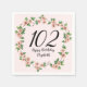 This pretty floral 102nd birthday napkin is perfect for a nice party and will set a fun and celebratory tone. This design features pink blossoms on stems, and is a nice feminine choice for a special event to celebrate a milestone birthday. Customize for your own birthday year, and search for "102" in my shop to see coordinating designs.