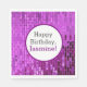 Joli design flashy avec un arrière - plan de tuiles de disco violettes brillantes. Au centre de la conception de dalle de boule disco violet est un cercle blanc avec garniture violette. À l'intérieur du cercle blanc est un texte personnalisable en gris et violet où vous pouvez ajouter le nom de l'invité d'honneur ou modifier complètement le texte. C'est le design parfait pour les fêtes d'anniversaire ou de bachelorette ! Invitations correspondantes disponibles !