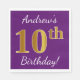 Serviette En Papier Purple, Faux Gold 10e anniversaire + Nom personnal