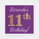 Ce design simple de serviette en papier comporte un message comme "11e anniversaire de Riccardo!", avec le "11e" à l’allure d’un faux or, sur un arrière - plan de couleur violette. Le nom peut être customisé. Il pourrait être utilisé à une fête d'anniversaire pour quelqu'un qui célèbre son onzième anniversaire. [~Z0000085]