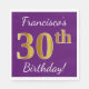 Ce simple design de serviette en papier comporte un message comme "30e anniversaire de Francisco!", avec le "30e" à l’allure d’or, sur un arrière - plan de couleur violette. Le nom peut être customisé. Il pourrait être utilisé à une fête d'anniversaire pour quelqu'un qui célèbre son trentième anniversaire. [~Z0000085]