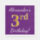 Ce simple design de serviette en papier comporte un message comme "Alexandre 3e anniversaire!", avec le "3e" ayant un faux aspect doré, sur un arrière - plan de couleur violette. Le nom peut être personnalisé. Il pourrait être utilisé à une fête d'anniversaire pour quelqu'un qui célèbre son troisième anniversaire. [~Z0000085]