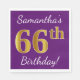 Serviette En Papier Purple, Faux Gold 66e anniversaire + Nom personnal