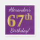 Serviette En Papier Purple, Faux Gold 67e anniversaire + Nom personnal