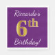 Ce design simple de serviette en papier comporte un message comme "6e anniversaire de Riccardo !", avec le "6e" à l’allure d’or, sur un arrière - plan de couleur violette. Le nom peut être customisé. Il pourrait être utilisé à une fête d'anniversaire pour quelqu'un qui célèbre son sixième anniversaire. [~Z0000085]
