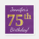 Serviette En Papier Purple, Faux Gold 75e anniversaire + Nom personnal