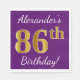 Serviette En Papier Purple, Faux Gold 86e anniversaire + Nom personnal