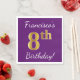 Ce design simple de serviette en papier comporte un message comme "Le 8ème anniversaire de Francisco !", avec le "8ème" à l’allure d’or, sur un arrière - plan de couleur violette. Le nom peut être personnalisé. Il pourrait être utilisé à une fête d'anniversaire pour quelqu'un qui célèbre son huitième anniversaire. [~Z0000085]