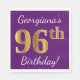 Serviette En Papier Purple, Faux Gold 96e anniversaire + Nom personnal