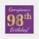 Serviette En Papier Purple, Faux Gold 98e anniversaire + Nom personnal