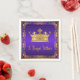 Serviettes en papier violet et or avec une élégante couronne royale d'or sur un riche arrière - plan tourbillon violet et or. Vous pouvez facilement customiser ces magnifiques serviettes d'évènement royal en ajoutant simplement le texte de votre choix dans le style de police et la couleur que vous préférez. Vous pouvez déplacer la couronne au besoin