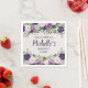 Joli violet et lavande peonies/aquarelle feuilles fleuris et verts avec parties scintillant d'or femme fête d'anniversaire personnalisés "Bienvenue" serviettes en papier. Personnalisé avec le nom de l'invité d'honneur. Contactez-moi pour obtenir de l'aide sur la personnalisation ou pour demander l'appariement ou la coordination des produits Zazzle pour votre groupe.
