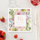 Feuilles verts et fleuris violets, jaunes et roses avec parties scintillant dorée, serviettes en papier de fête pour femmes du 16e anniversaire personnalisées avec votre nom et votre date de fête.