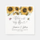 Le thème de l'abeille rustique et boho genre révèle la serviette en papier de fête avec l'aquarelle illustration des tournesols jaunes et le souffle du bébé avec des bourdons. Le texte dit : "Qu'est-ce que l'abeille va devenir ?"