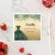 Pour une Quinceañera, fête du 15e anniversaire. Un arrière - plan à l'allure fausse or avec confetti vert, une robe et confetti vert. Le nom est écrit avec un script de style moderne écrit à la main. Personnalisez et ajoutez votre nom et une date.