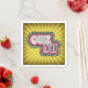 Serviettes en papier Quiz nuit fêtes. Avec une grosse typographie audacieuse entourée de lumières de dressing. L'arrière - plan est un motif de sunburst jaune.