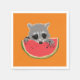 Raccoon Mangeant de la pastèque. Couleur arrière - plan personnalisée. Dessin d'art numérique raccoon mignon pour amoureux des animaux.