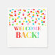 Bienvenue serviettes avec motif confetti arc-en-ciel.