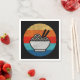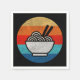 Illustration de ramen de style rétro avec nouilles et baguettes sur un arrière - plan de coucher de soleil de style rétro coloré dans les couleurs jaune, orange, rouge, turquoise et bleu