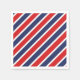 La serviette de papier pour fête est présentée en taille cocktail blanche avec une impression de rayures rouges, blanches et bleues.