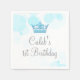 Serviettes en papier Couronne bleue et points pour réception de fête d'anniversaire royale. Personnalisez avec n'importe quel texte.
