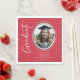 Personnalisez votre fête de graduation avec cette serviette en papier en faux rouge. Il présente Graduate dans un script blanc gras. Un ovale Gold, Black et White encadre une photo du diplômé. Les détails de la journée peuvent être customisés. Les couleurs sont parfaites pour les diplômés en sciences infirmières et en médecine.